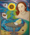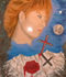この作品はほとんどの部分を「食器を洗うスポンジ」で描きました。 当初描いたところが失敗したので消す際、いたづらにスポンジで バラを描いてみたところ思いがけず面白い効果がありました。 この偶然の発見を活かし、イメージを膨らませていきました。